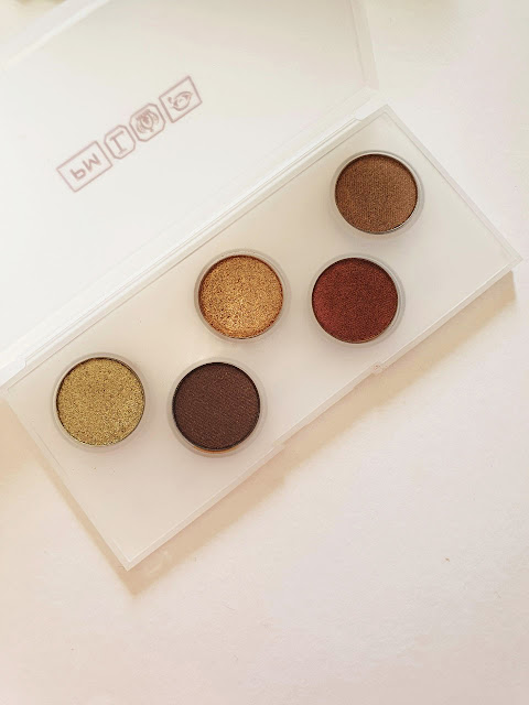 These are the swatches of the shades. Starting with a black brown shimmer, then a cooler brown shimmer, a bright antique yellow gold shimmer, a bronze shimmer and finally a chocolate brown shimmer. When I tested it I tried the bronze shimmer shade on top of a neutral matte shade from a Mac palette. I have to say I was very impressed with the pigmentation of the shadow as you could clearly see it well once applied. I applied it with my finger as the shimmery effect wasn't showing up on my brush when I tried to apply it that way. In terms of longevity, I'm afraid that's where things started to fail a bit. I was out for four hours and by the time I got back home the bronze colour was still showing however the shimmer that was there within the shadow before had pretty much all gone. I do have to note though that the day I tried it the temperature was 29 degrees celcius, so basically pretty hot for London! I will try it again soon on a day when it's cooler and perhaps raining with low humidity just to see how long it lasts then. It's a shame as the colours are beautiful and very wearable, so like I mentioned I won't give up on them just yet. If you do want to purchase it I have a link here. https://shopstyle.it/l/bjDaW